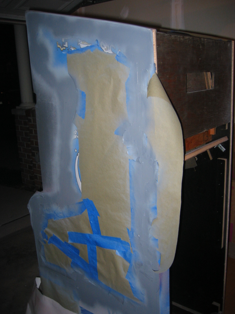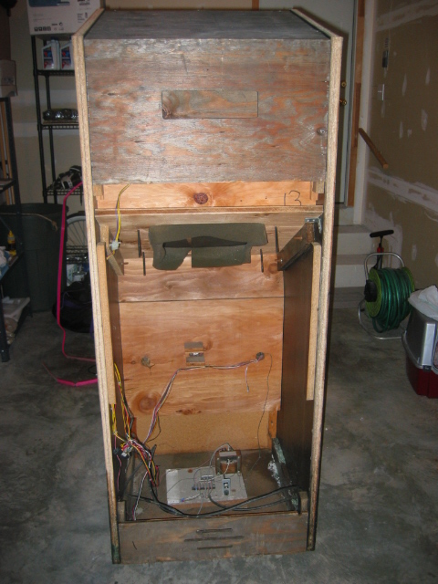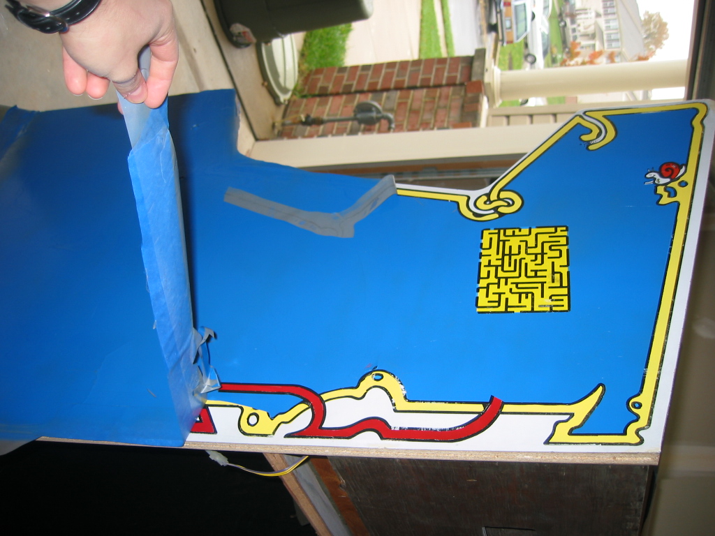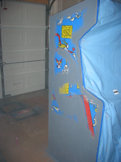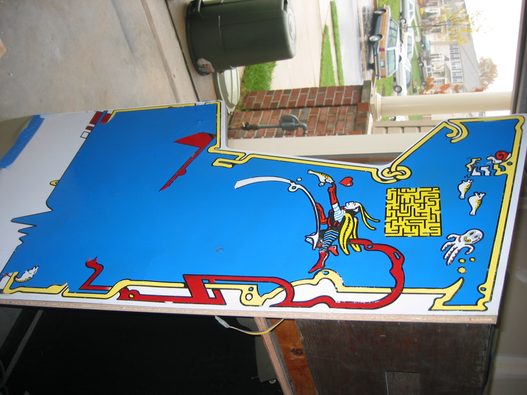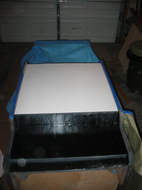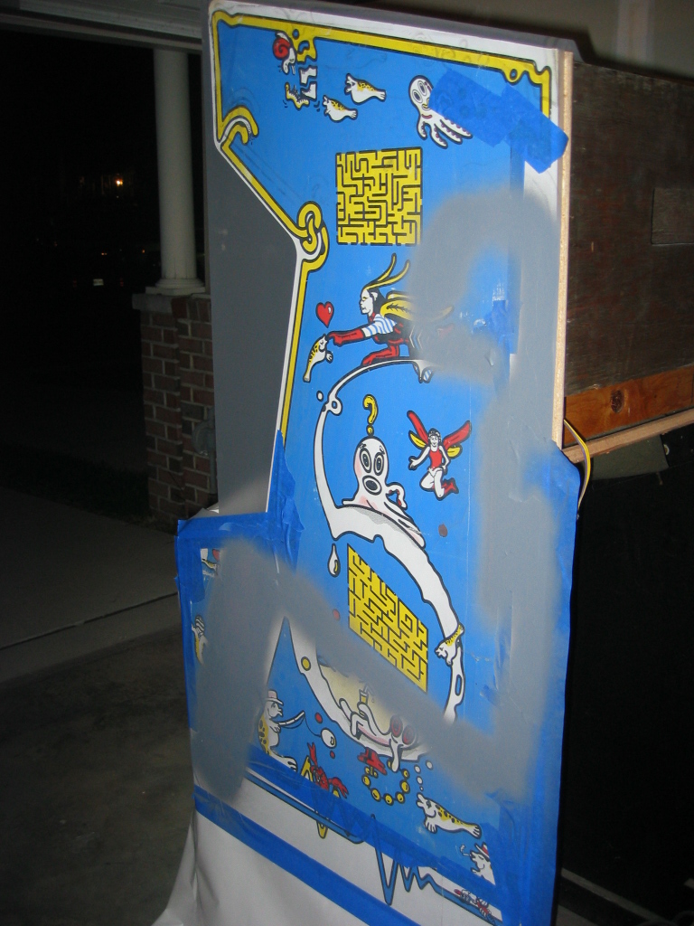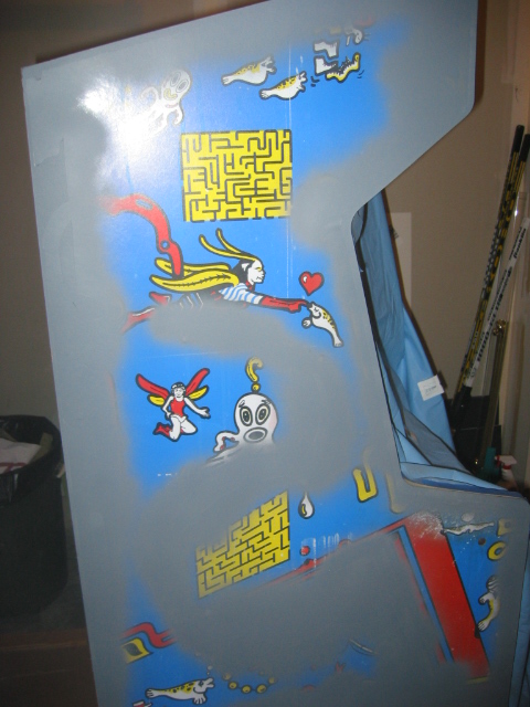 pretty darn bubbled up from age or probably moisture. I don't want to replace it since it's actually very sturdy still, and this cabinet wasn't made to be disassemled like my dig dug was. (it's pretty much nailed and stapled and scrwed together, with every joint being out of reach) I could prime it