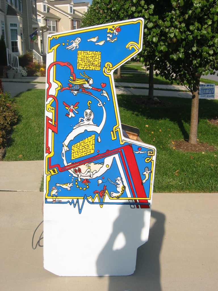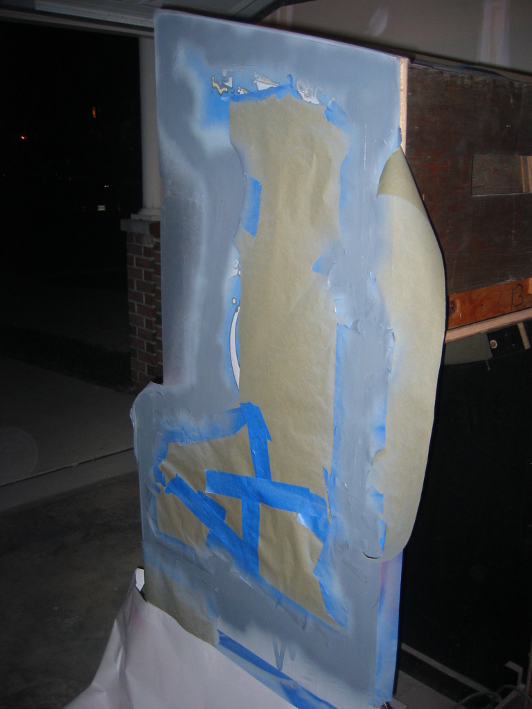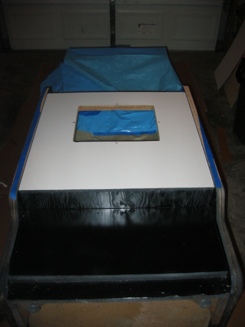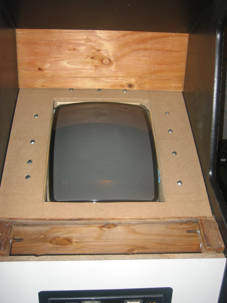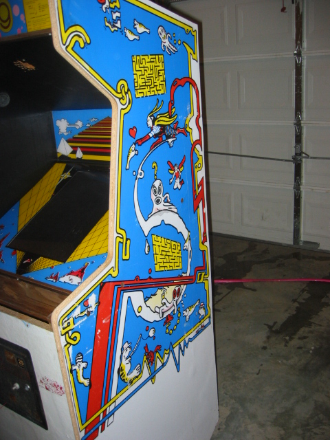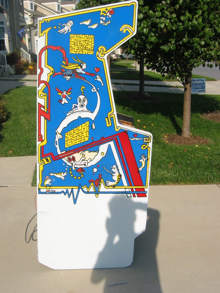 pretty darn bubbled up from age or probably moisture. I don't want to replace it since it's actually very sturdy still, and this cabinet wasn't made to be disassemled like my dig dug was. (it's pretty much nailed and stapled and scrwed together, with every joint being out of reach) I could prime it