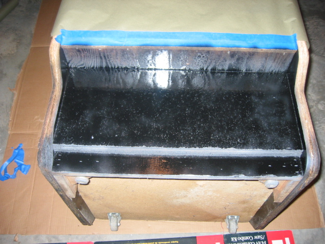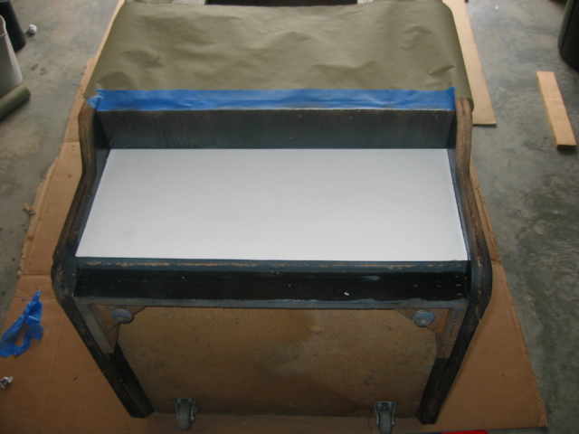 after my prime and paint test on the bottom I've decided to cover the whole front (white and black parts) with a new sheet of formica or laminate. That should give it a really nice brand new look to it, it's worth the $10.00 for a 2x4 sheet of formica.