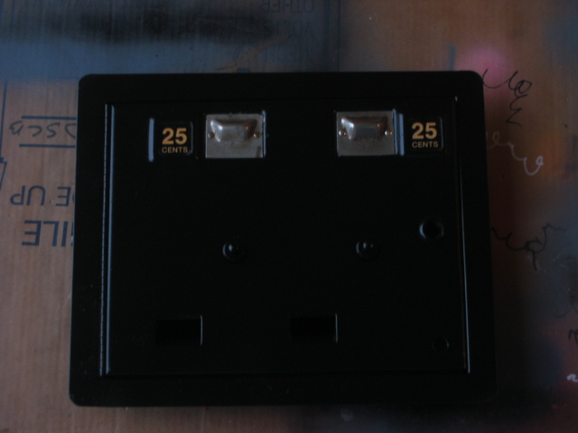 ok put the coin slots in! This finishes the first 24 hours of work on it since I recieved it (not 24 hours straight, but the first day for work)