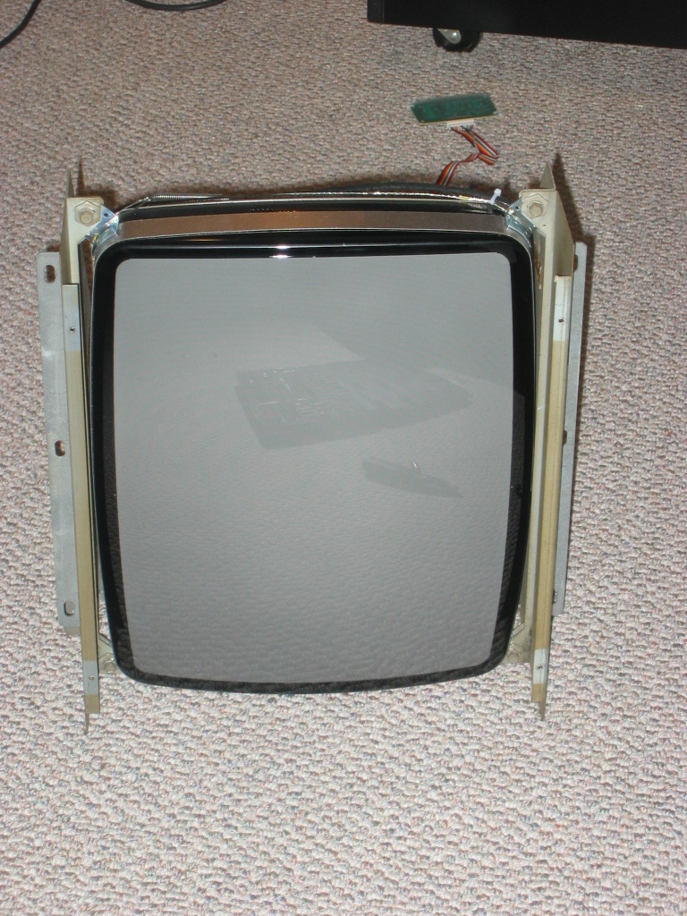 I had to remove the old monitor and remount the new monitor tube and chassis into the old mounting case, since my new monitors don't have universal mounts :(