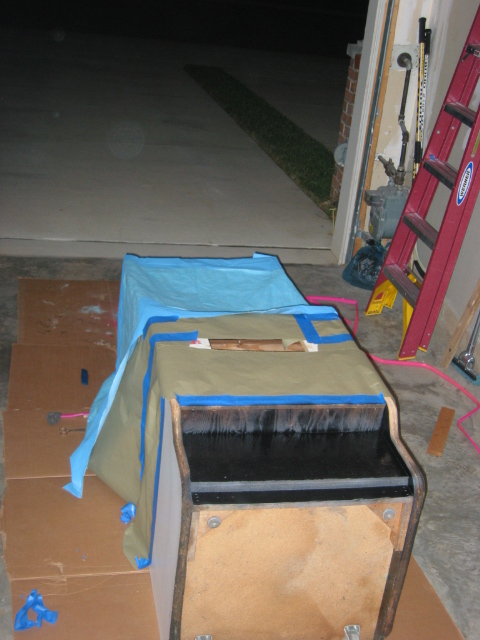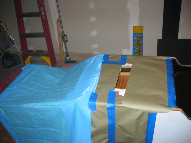 pretty darn bubbled up from age or probably moisture. I don't want to replace it since it's actually very sturdy still, and this cabinet wasn't made to be disassemled like my dig dug was. (it's pretty much nailed and stapled and scrwed together, with every joint being out of reach) I could prime it