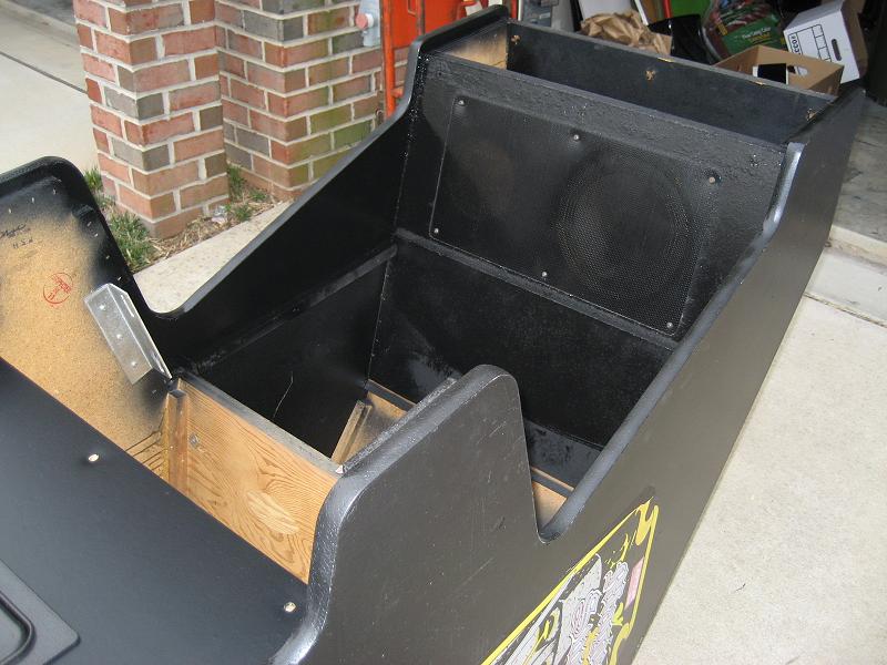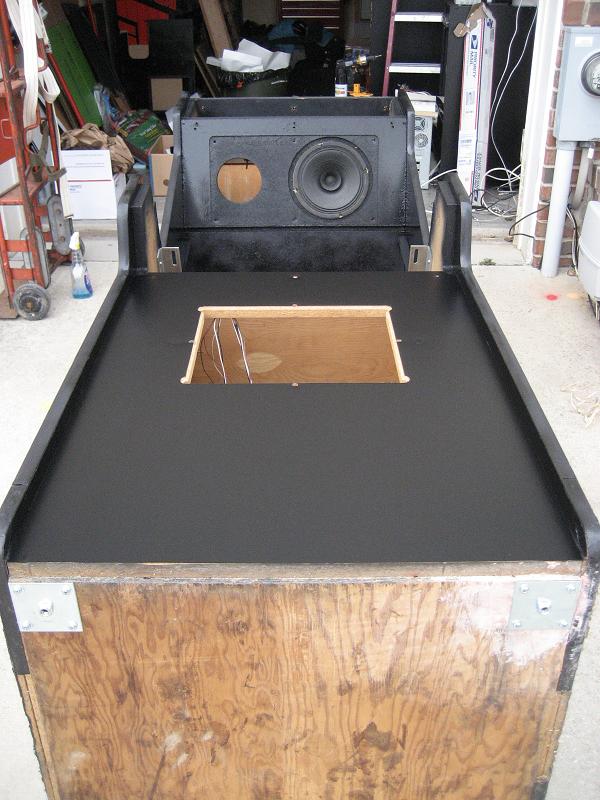 Cabinet needs some touch up painting on the sides of the front, we'll spray paint all the small surfaces around the front side and around the monitor and speaker grill sides