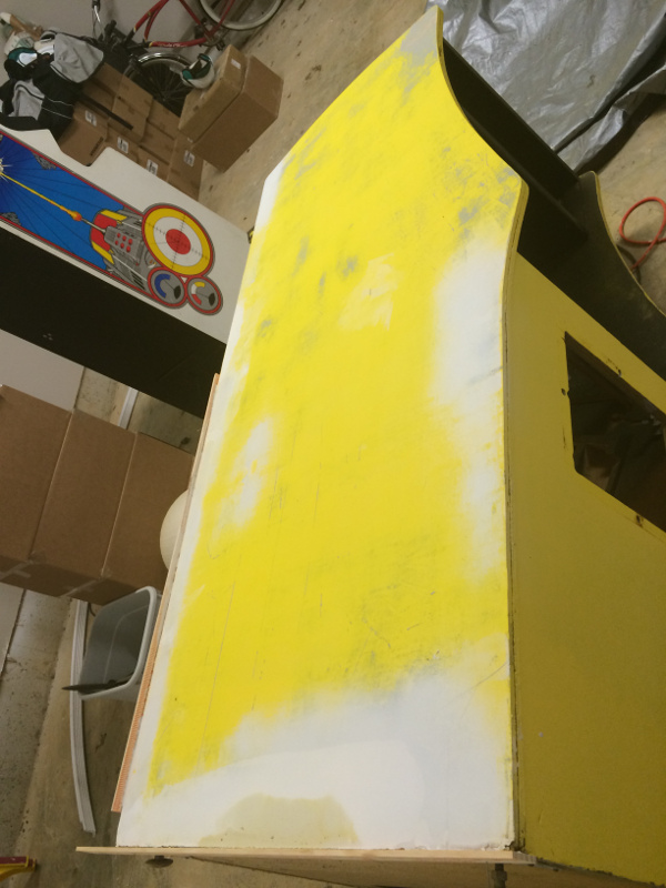9/5/2014 - Fixing some warped wood. Removed flaking wood, and dremmeled out where pieces of wood were cracking and warped, filled in with spackle. Also used yardsticks on the edges and spackle to make a consistant flat surface to fix nicks and dents.